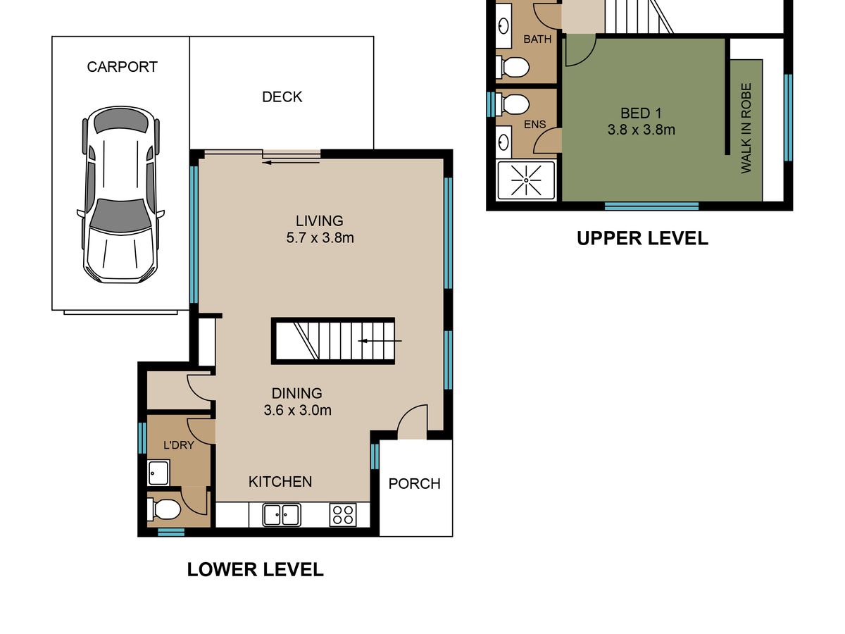 The downstairs level is ideal for relaxing and entertaining, with a generous air-conditioned lounge, contemporary kitchen, and dining area, plus a convenient powder room. Outside, a private covered timber-decked entertaining area provides the perfect spot to unwind, and secure lock-up parking completes this tidy, move-in-ready home.