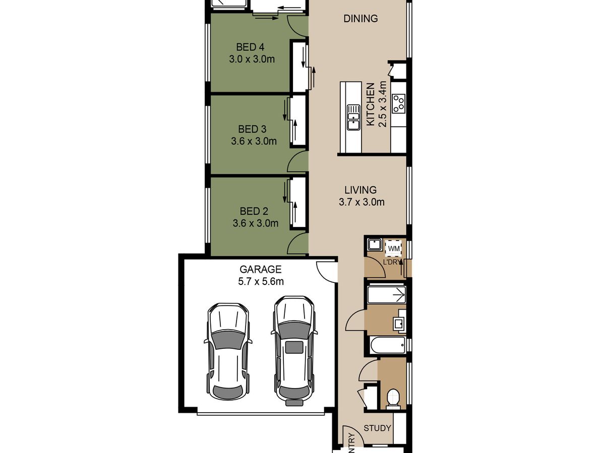 This stylish home offers four carpeted bedrooms with built-ins and ceiling fans, including a master with ensuite, walk-in robe, and air-conditioning. Enjoy open-plan living with a modern kitchen, second media room, built-in study nook, and built-in Bluetooth speakers. The home also features a double garage, separate laundry, and undercover alfresco for easy indoor-outdoor living.