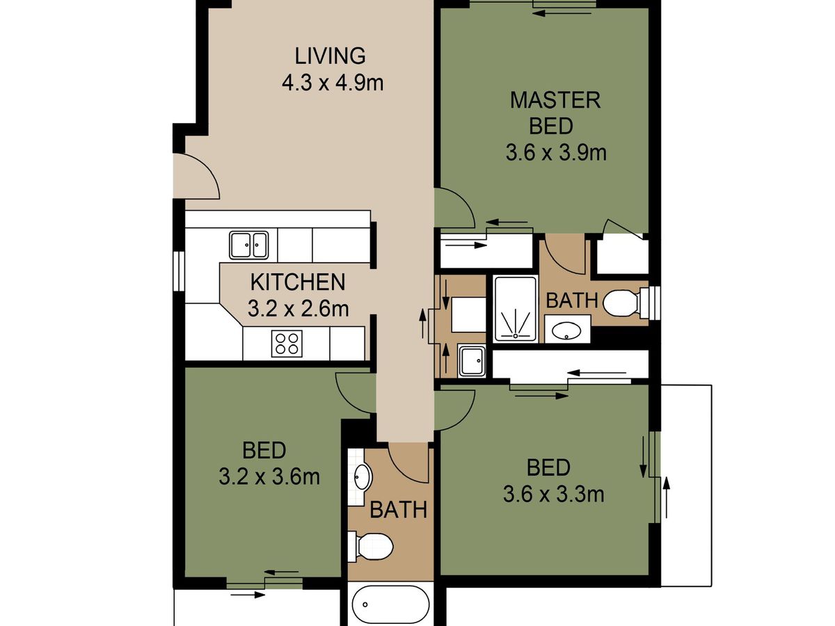 The well-appointed kitchen has been designed for both functionality and style, featuring ample bench space, plentiful storage, and quality appliances suited to everyday living and entertaining. The master bedroom includes an ensuite, built-in wardrobe, and direct balcony access through glass sliding doors that fill the room with natural light. Two additional bedrooms both feature built-in wardrobes, ceiling fans, and Juliette balconies, providing great separation and versatility for guests, children, or a work-from-home setup.