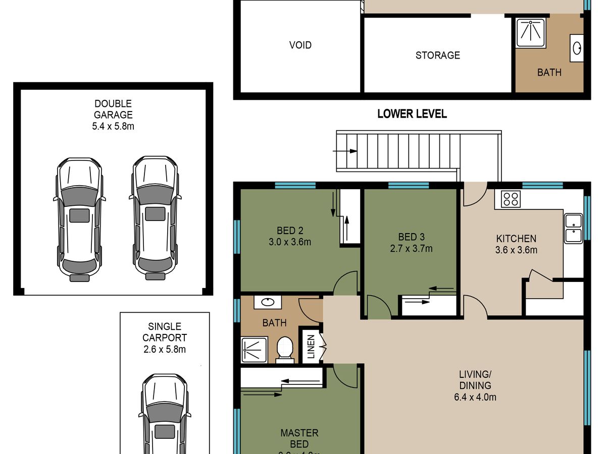 Downstairs, the home reveals a highly versatile second living area/multipurpose room complete with air conditioning and a kitchenette, perfect for extended family, a teenage retreat, or a home office. Outside, the fully fenced yard offers shady trees, a relaxed outdoor dining space, and plenty of room for children and pets to play. Parking is well catered for with a carport, rear lock-up garage, and additional storage.