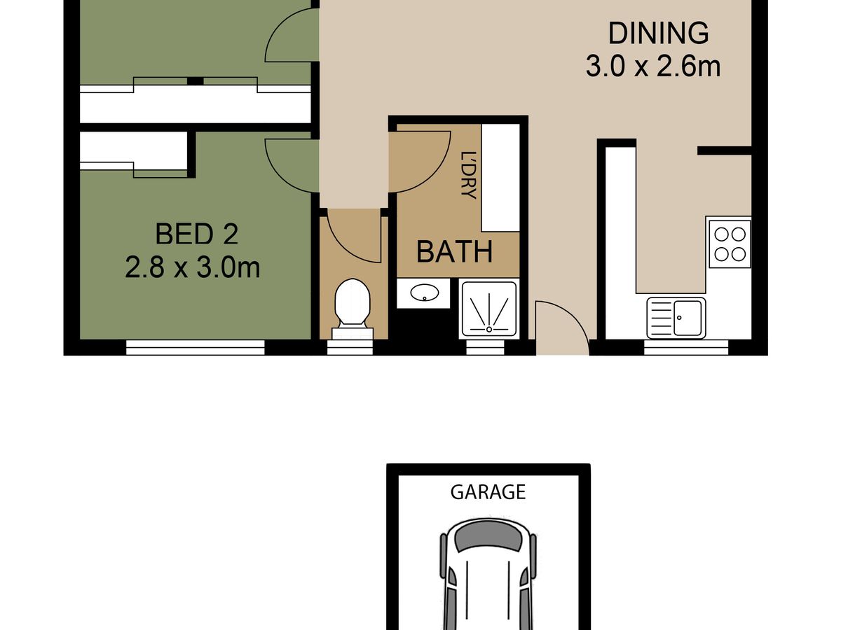 Both bedrooms are well proportioned and include built-in wardrobes, serviced by a large central bathroom. The layout is practical and easy to live in, offering a solid foundation for comfortable everyday living with the opportunity to add your own touches over time.