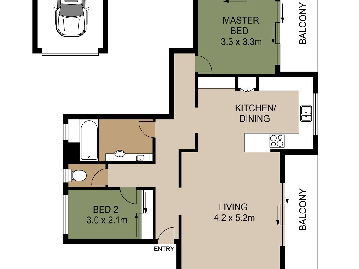Both bedrooms are well sized and thoughtfully positioned, serviced by a central bathroom. The refreshed interiors make the apartment move-in ready, while still offering a neutral canvas to personalise over time.