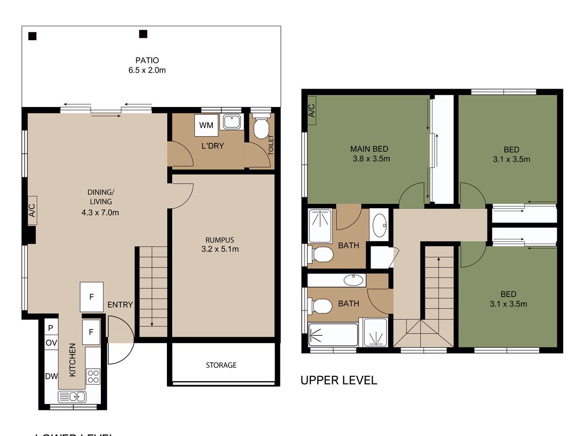 • Three well-sized bedrooms, two bathrooms