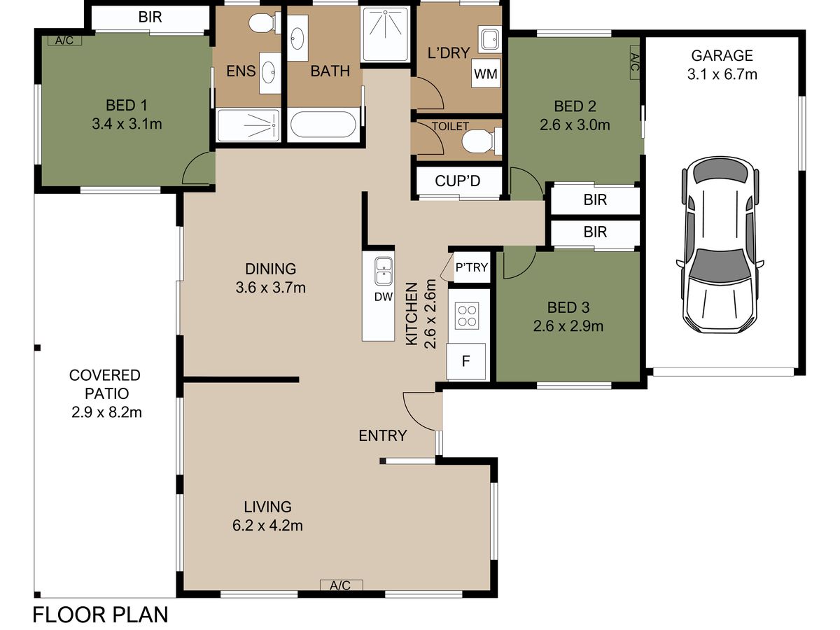 • All three bedrooms with ceiling fans, with two also featuring air conditioning