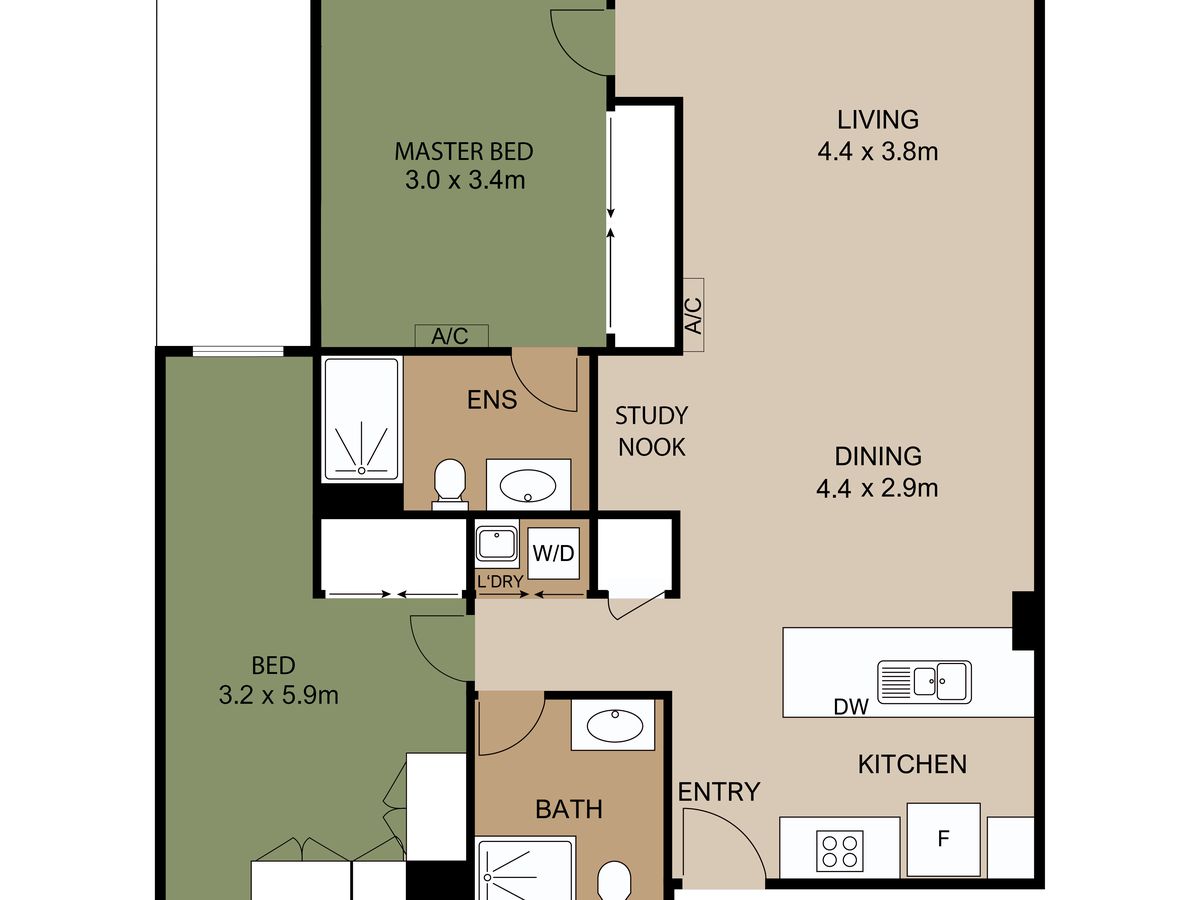 Positioned within a quiet and well-maintained complex, this ground floor two bedroom, two bathroom unit offers a rare combination of space, privacy and lifestyle something not often found in unit living.